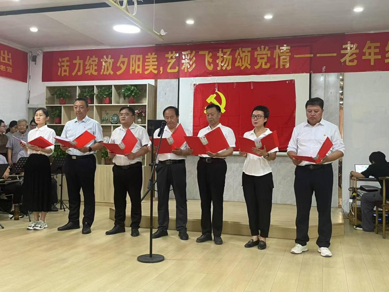 活动仪式上,省派第一书记工作组朗诵了原创作品《运河为证忠心向党》,表达了书记们扎根乡土,用脚步丈量民情,以实干托起乡村振兴的决心。“礼行七彩志愿服务团”表演了心理剧小品《记忆的温度》,通过生动感人的故事,传递温暖与爱的力量。老年文艺爱好者表演了地方戏乱弹、豫剧、京剧、舞蹈走秀等节目,展现了新时代老年人老有所为、老有所乐的精神风貌。全体人员合唱《没有共产党就没有新中国》以激昂的歌声展现对党的忠诚与热爱,表达了坚定不移听党话、跟党走的理想信念。演出结束后,全体党员重温入党誓词,这铮铮誓言不仅是对入党初心的回溯,更是对为共产主义事业奋斗终身的庄严承诺。