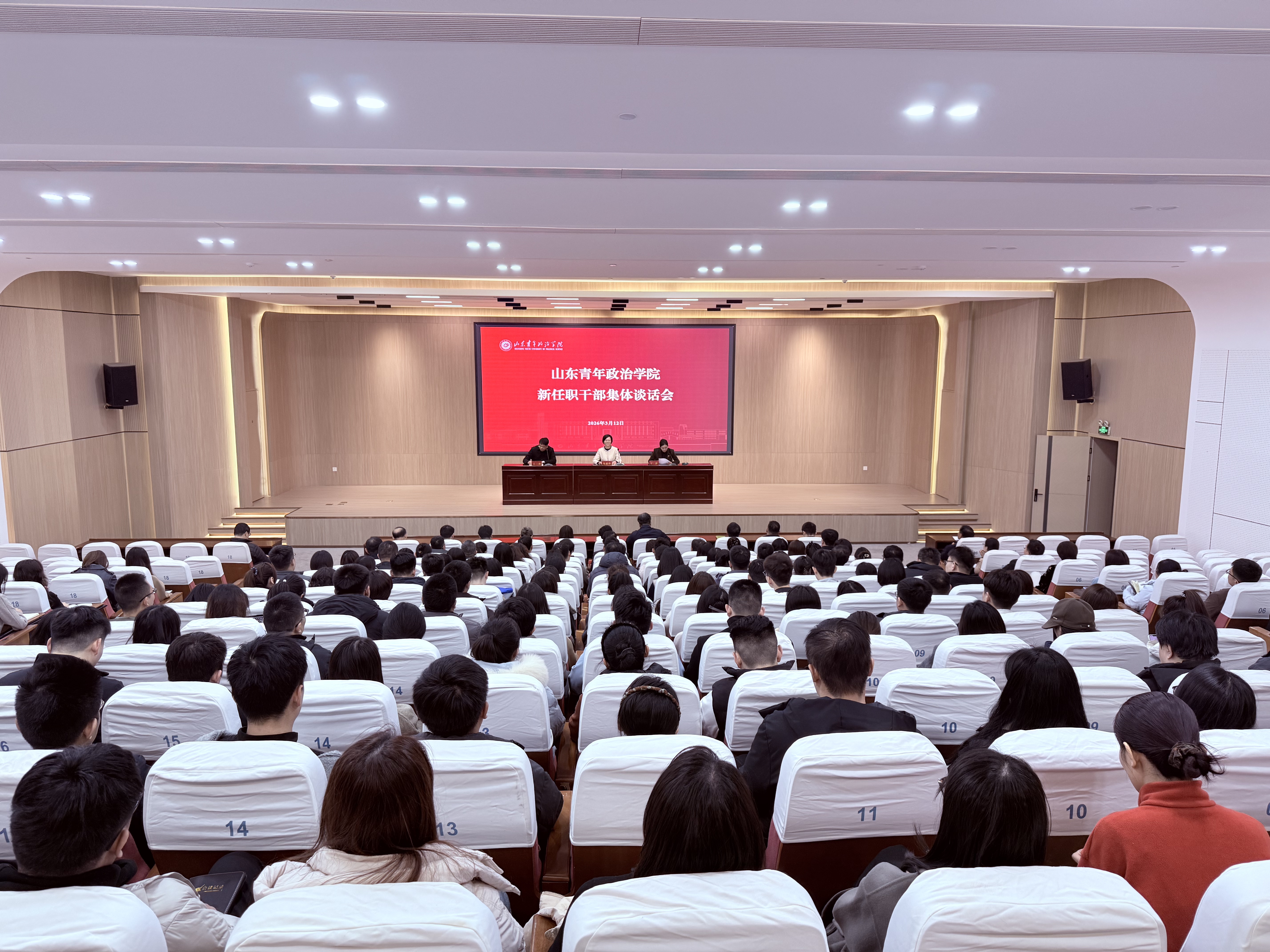 3月12日下午,学校在学术报告厅召开新任职干部集体谈话会。党委副书记冯素玲出席会议并讲话,纪委副书记、纪委(监察专员办公室)综合处处长王三海作廉政谈话。会议由党委委员、组织部部长、党校校长丁萍主持。